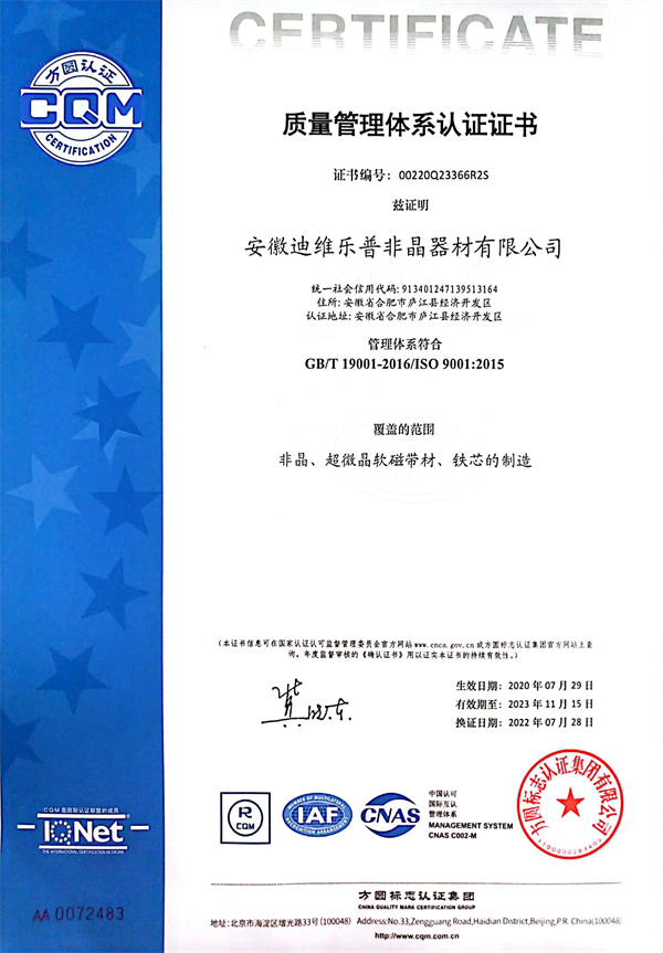 人才是企業(yè)的根基,質(zhì)量決定企業(yè)生命,推進非晶材料應(yīng)用,永攀行業(yè)科技高峰,期待與您合作,共鑄輝煌!